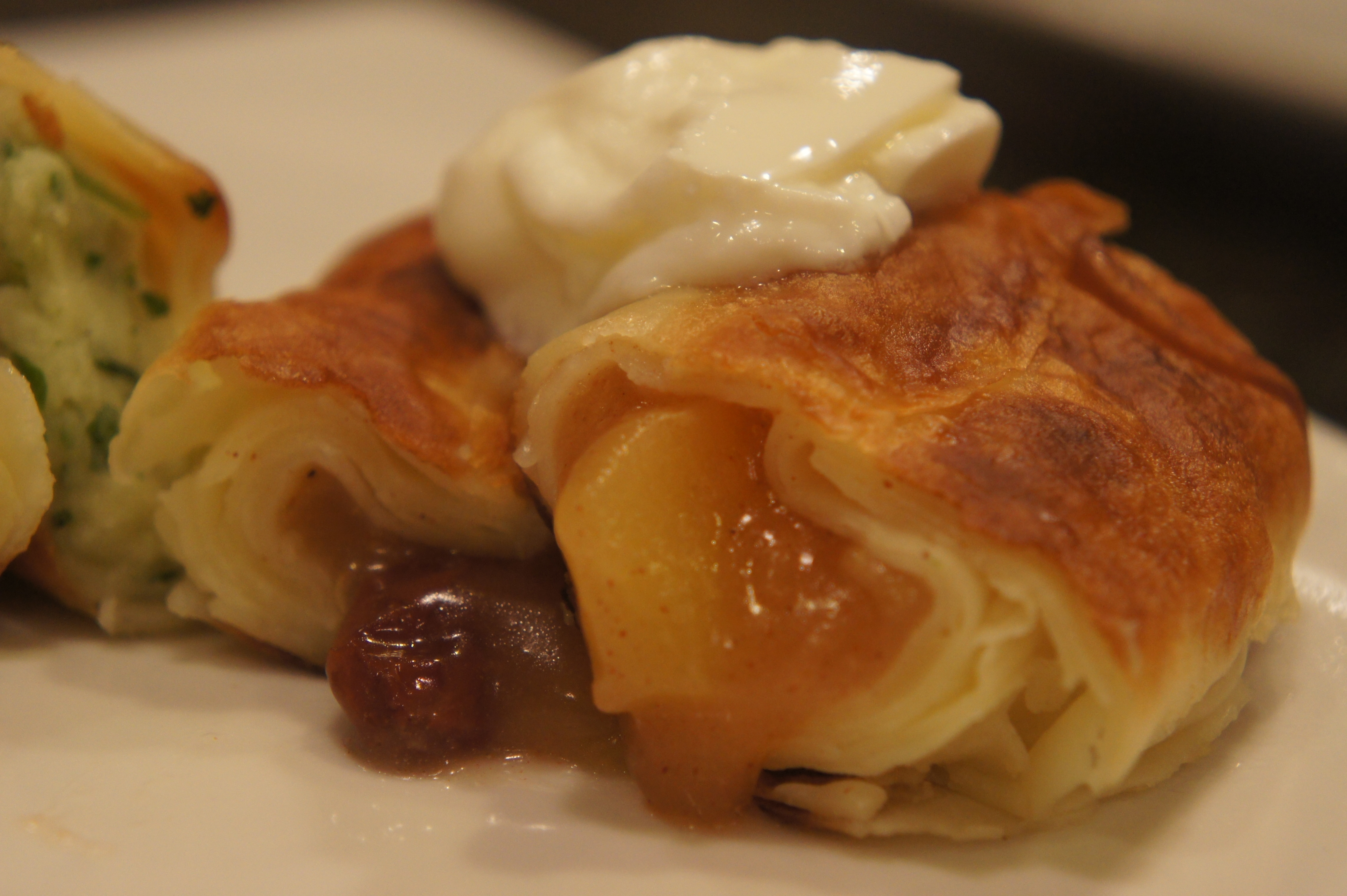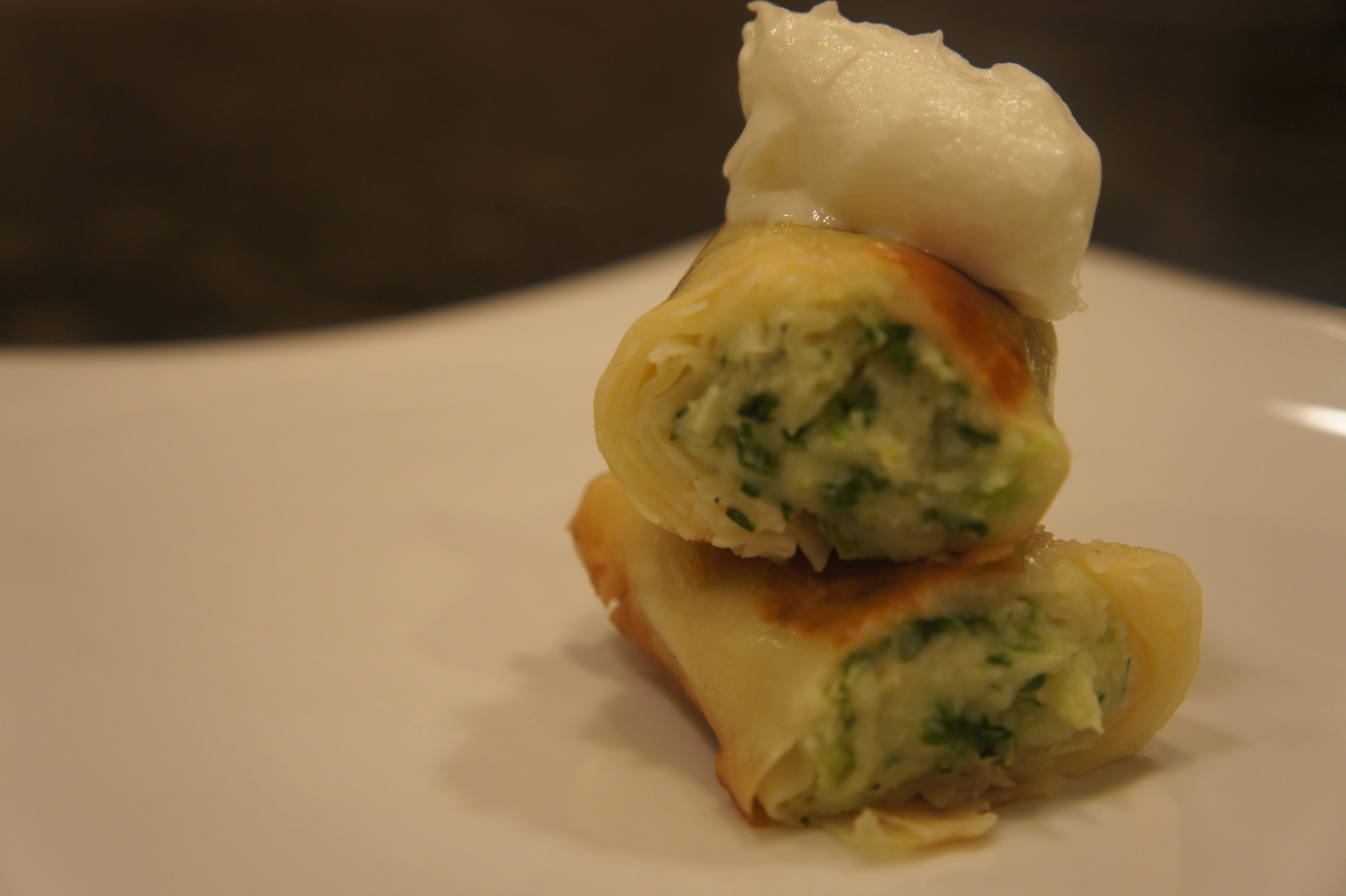 For tonight’s trio I choose to make potato-onion (these taste a bit like pierogi), broccoli-spinach-mushroom, and apple cinnamon. I served with a bit of low fat sour cream. Greek yogurt works great too.