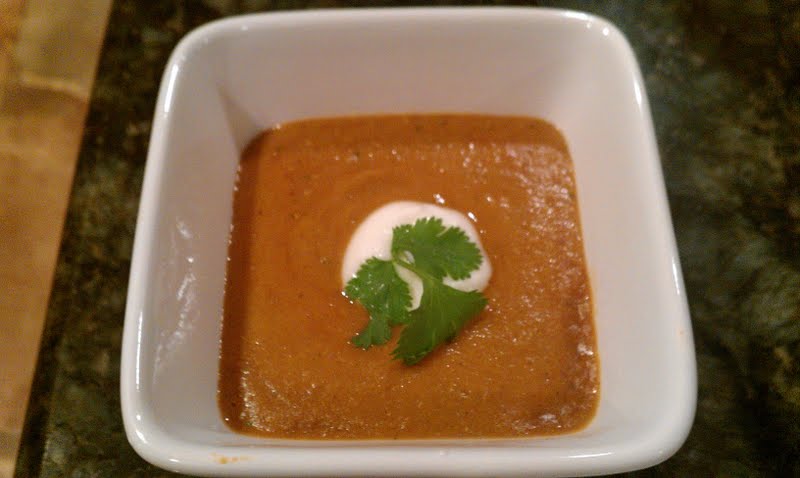 6. Pour soup into bowls and top with a tablespoon of Greek yogurt and a spring of cilantro.