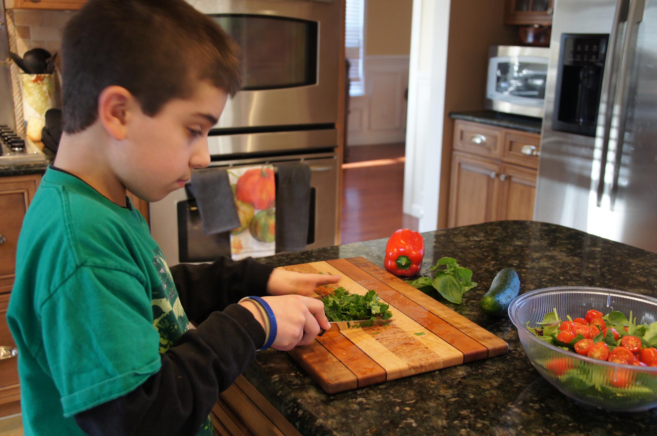 So terrific to include your kids in cooking. It helps you and helps them. I think that all the cooking shows encourage family cooking. The salad looks yummy.