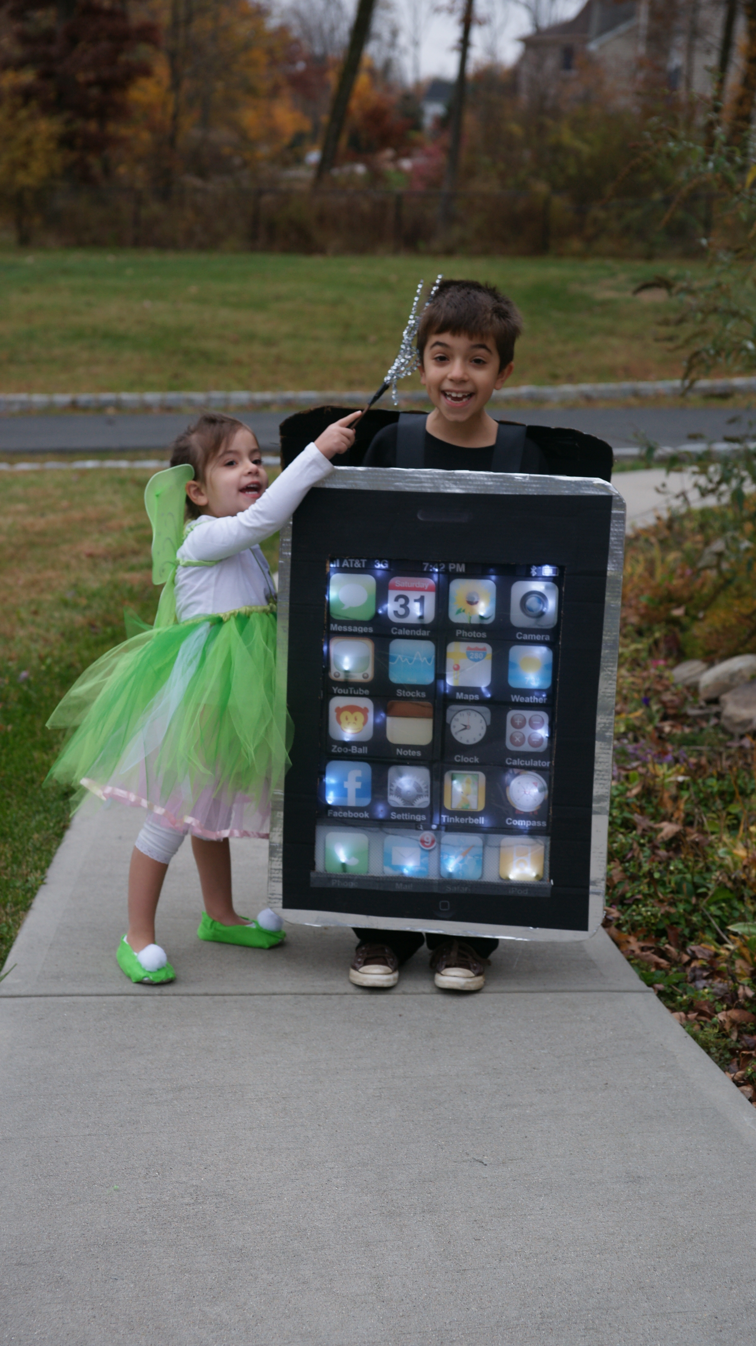 My daughter wanted to be Tinkerbell. Ahh easy trip to the Disney store.. right? WRONG… She wanted me to make a Tinkerbell costume. Well I did and I tied in the two costumes by having a “Tinkerbell” app on the iphone.