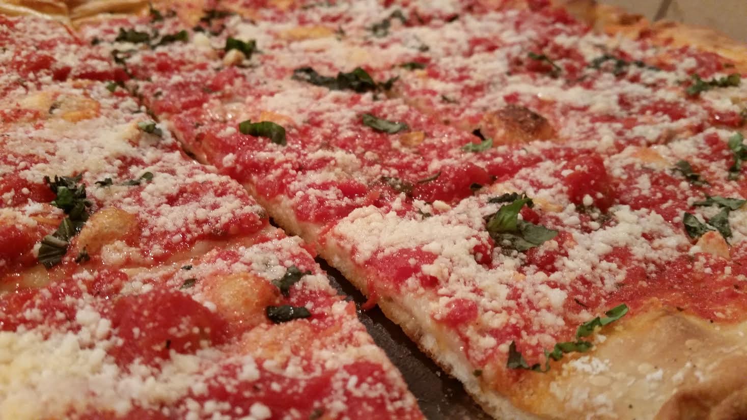 Grandma pizza is amazing. It is in a totally different class than your typical slice. The crust is thin, light and crispy. The sauce is tangy and chunky with fresh garlic and basil. The slice is not your typical triangle, but square or rectangle and there is no “gooey” factor to this pizza as it just sprinkled with just a touch of parmesan cheese. I have heard that some Grandma pizzas have mozzarella cheese baked in to the dough – but not this one. I promise you – it is really amazing even if you love traditional pizza. The best Grandma pizza I have ever had comes from a local pizza place in my home town, other pizza places try to pass of a thick sicilian slice dripping with cheese and fresh basil as a Grandma slice. I have spent considerable time trying to replicate the Grandma pizza I love. Enjoy!